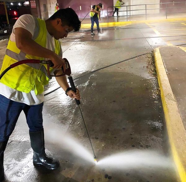 Our skilled power washing crews can revamp your company’s sidewalks, building exteriors, parking garages, and more!